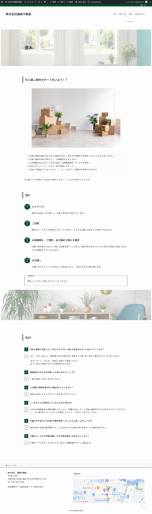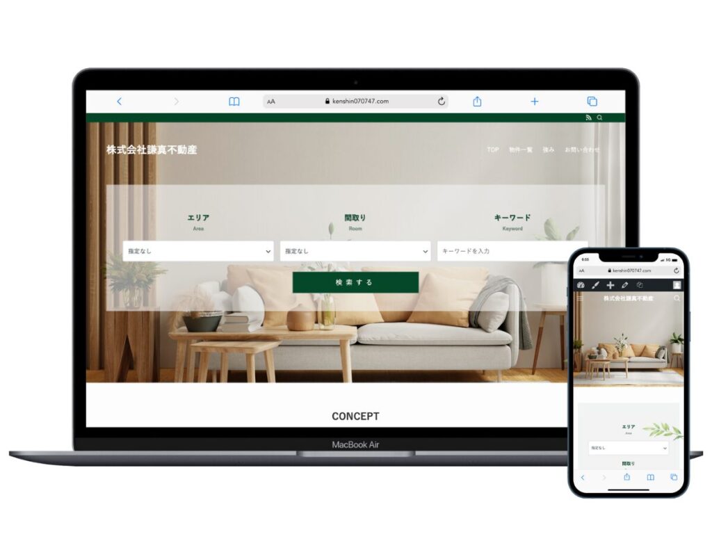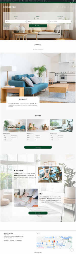 緑を使った自然な雰囲気で、という事で全体的にナチュラルなデザインに仕上げました。賃貸の仲介業務をこれから行われるという事でしたのでトップページに検索機能をおつけ致しました。緑を基調とした爽やかなデザインに仕上がりました。