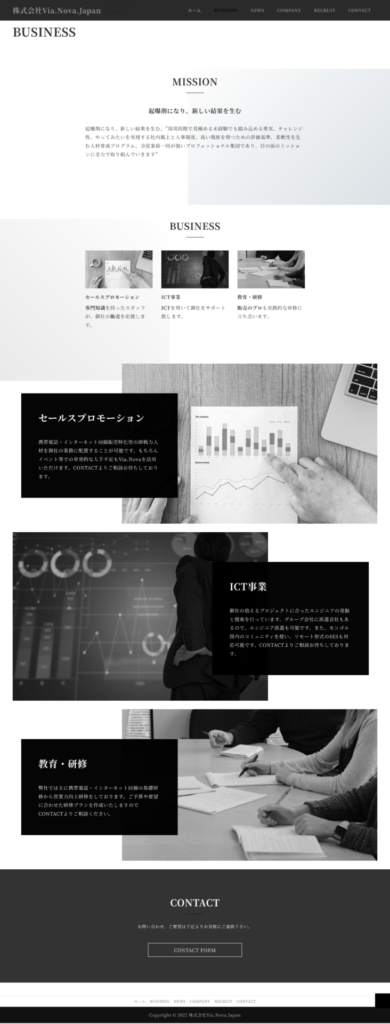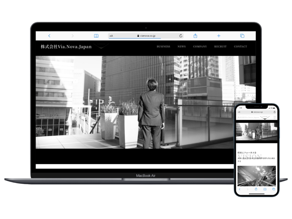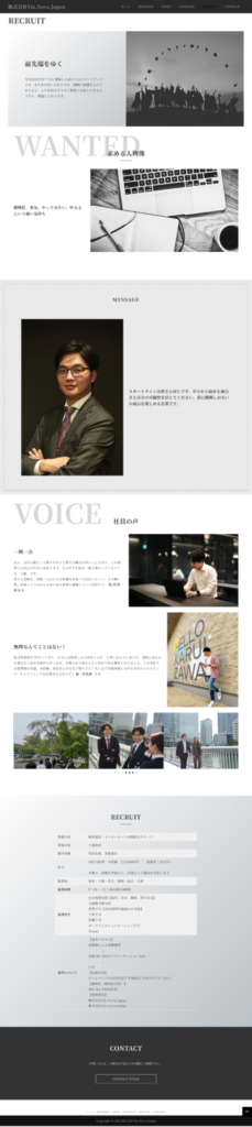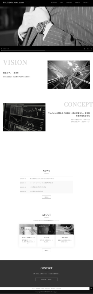 トップページの最初に動画を置き、全体をモノトーンでクールな感じにして欲しいとのご要望でした。白黒だと味気ない印象になりがちですが、画像をポイントで配置する事で飽きのこないスタイリッシュなデザインに仕上がりました。